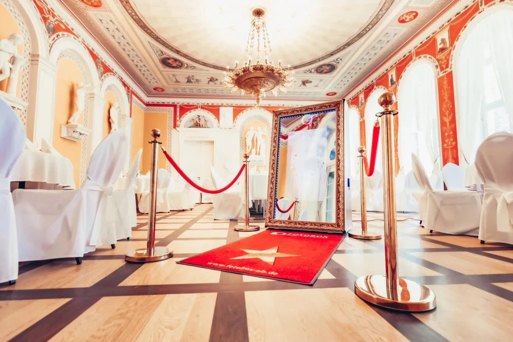 Wir liefern den Fotospiegel direkt zu Ihrer Location in Berlin, übernehmen den Aufbau und sorgen für einen reibungslosen Ablauf.